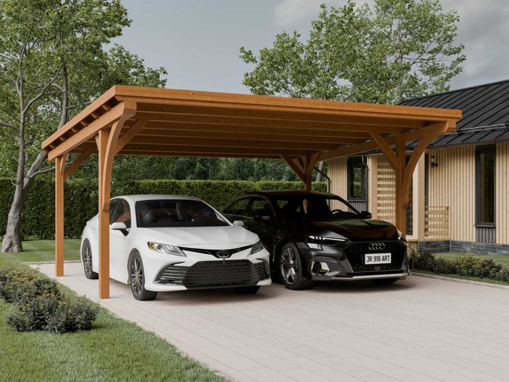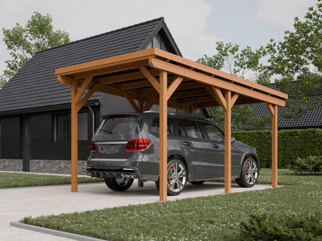 Wiaty wykonane z drewna klejonego warstwowo (BSH) to propozycja dla osób, które szukają trwałego i estetycznego zadaszenia do ochrony samochodu, sprzętu ogrodowego lub jako przestrzeni rekreacyjnej. Dzięki zastosowaniu drewna klejonego wiaty charakteryzują się wyjątkową wytrzymałością na obciążenia oraz stabilnością wymiarową, nawet przy dużych rozpiętościach konstrukcyjnych.